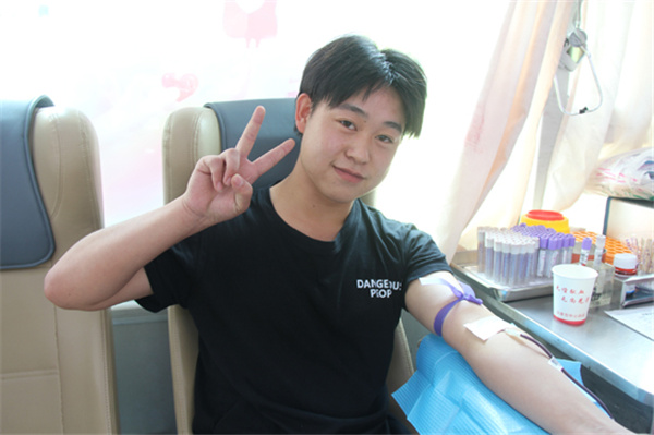 金濤濤是汽修專業(yè)四年級(jí)的學(xué)生,當(dāng)天他第一個(gè)走上獻(xiàn)血車,已經(jīng)第四次獻(xiàn)血的他顯得非常輕松。他告訴我們,自己初次獻(xiàn)血是十八歲,之后每年時(shí)間到了都主動(dòng)來(lái)獻(xiàn)血,上次他還拉上了爸媽,一家三口一起獻(xiàn)了血。金濤濤覺得獻(xiàn)血特別有意義,對(duì)自己的身體有好處,還能救人,每次收到血站發(fā)來(lái)的用血短信心里都超級(jí)自豪,就想多喊幾個(gè)人一起來(lái),他說今后一定爭(zhēng)取把全宿舍的人都動(dòng)員起來(lái),多獻(xiàn)血多出力多助人!