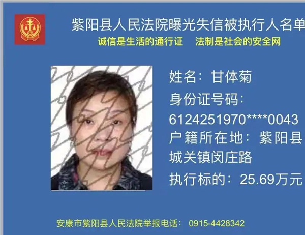 曝光失信 | 紫陽縣人民法院:關于敦促甘體菊履行法定義務的公告