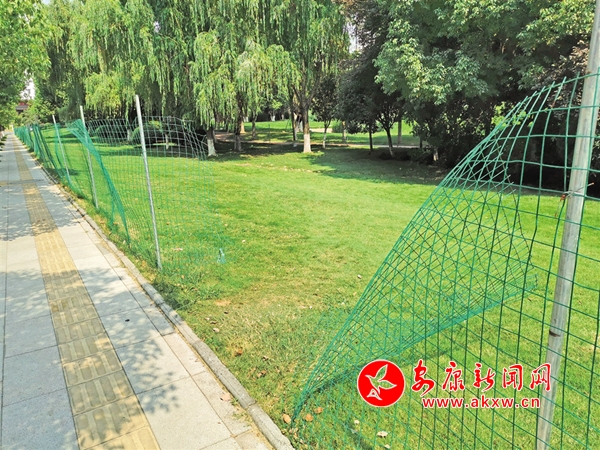 清明節(jié)期間,安康高新區(qū)運動公園內(nèi)5處圍網(wǎng)被游人破壞。(王琳 攝)