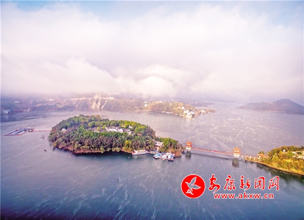初冬的清晨,瀛湖風(fēng)姿綽約、曼妙無比。起初湖水像是受熱不均的沸水,這里一點(diǎn),那里一塊冒著熱騰騰的青煙,如絲如縷,在水面上輕盈地飄動、游離、撕扯,如慵懶自在的白云,把天空、湖水襯托得更藍(lán)。漸漸地,煙嵐越來越濃,越來越多,像化不開的乳汁,最后整個湖面煙波浩渺,小船和遠(yuǎn)山若隱若現(xiàn),似人間童話仙境。這樣的山圍繞著這樣的水,這樣的水倒映著這樣的山,再加上湖中帆影點(diǎn)點(diǎn),白鷺行行,小島林立,魚群結(jié)對,有種人在畫中游的感覺。深冬,總會落一兩場雪。那雪,極富層次。山下,素雪輕薄覆蓋;山上銀裝素裹,玉潔冰清。湖水則咕嘟咕嘟冒著熱氣,白綠相配,分外醒目,似丹青妙手繪制的山水畫,又似巧手繡娘精繡的刺繡,美輪美奐,惹人愛憐。