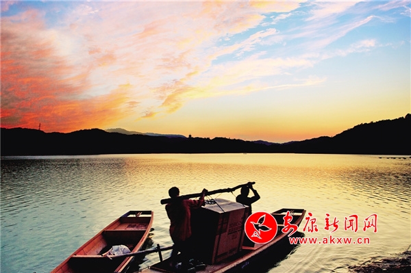 景隨人動,瀛湖最美的季節(jié)還不在春天。深秋時節(jié),電站大壩下閘蓄水,水位上升,湖面開闊,山啊、樹啊宛立在水中,道不出的萬種風(fēng)情。水色如煙,光影朦朧,島嶼羅列,山水相依相親,如夢似幻。此時大自然早已少了春的細(xì)賦描繪,已是濃墨重潑的巨幅寫意,山上樹葉五彩斑斕,深紅、橙紅、橙黃、明黃、碧綠、墨綠,層層疊疊、深淺不一,把大山裝扮得分外妖嬈,哪里還有“枯藤老樹昏鴉”的凄涼景象?