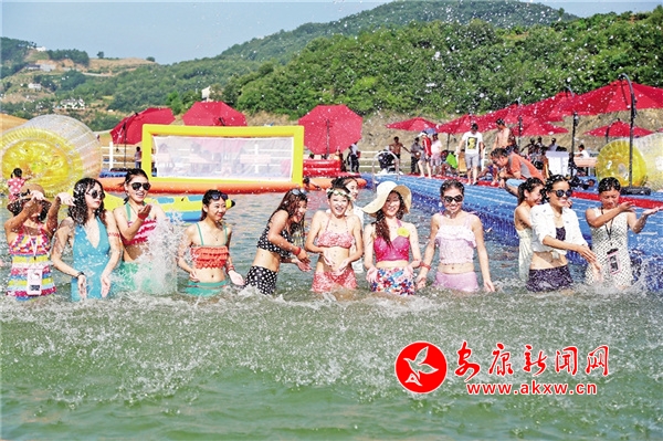 瀛湖的初夏,萬千變化。清晨,山和水還在夢中酣睡,一輪紅日從東面湖的盡頭沐浴而出,爬上山頭,霞光染紅了湖水,染紅了天空,湖面顯得更加清幽。傍晚,落日熔金,給群山鍍了一層金邊。此時,群鳥歸隱,群魚入眠。江風(fēng)攪動湖水,湖面波光瀲滟,明麗動人。晚歸的漁民搖著一葉扁舟在寂靜的湖面上飄蕩,成為畫中最美的風(fēng)景。習(xí)習(xí)涼風(fēng)也吹散了白日的暑熱,舒適愜意,是休閑避暑的好去處。若遇雨天,天地間扯起絲絲銀線,水天一色,如煙如霧,籠罩在瀛湖上空。那若有若無輕煙一樣的雨霧輕盈地飄蕩在湖面上、群山間,翠屏山莊上的亭臺水榭、湖心碧螺島上的螺峰塔,全都沐浴在水蒙蒙的輕紗中,如夢似幻。“西塞山前白鷺飛,桃花流水鱖魚肥。青箬笠,綠蓑衣,斜風(fēng)細(xì)雨不須歸?!贝藭r,湖里的魚兒成群結(jié)隊(duì)地游出水面透氣,正是釣魚的最佳時機(jī),湖邊不少垂釣愛好者正興致勃勃地冒雨釣魚,完全不顧雨已打濕了衣服。湖中,一葉葉漁舟和游船在雨中漫游,幽幽絲竹之聲從游船中飄出,像游走在煙雨迷蒙的江南水鄉(xiāng)。
