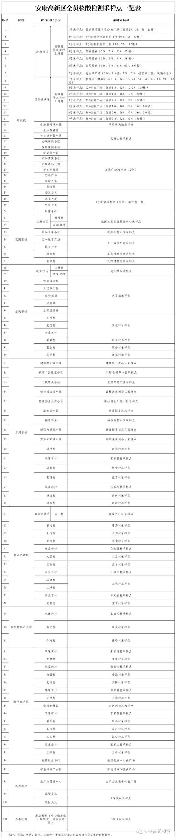 附件:安康高新區(qū)全員核酸檢測采樣點一覽表