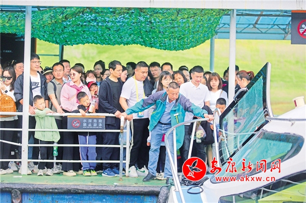 休閑勝地翠屏島,最大的亮點是玉清橋的彩虹瀑布,游客從橋下經(jīng)過,感受“瀛湖之水天上來”的曼妙,這也是瀛湖為游客送上的初夏第一絲清涼。橋頭幸福的天梯、鳥巢,成為排隊拍照的絕佳點位。運動場上,滾鐵環(huán)、射箭、投壺、打籃球,讓游客流連忘返。兒童樂園旁,微型爆米花機勾起了孩子們參與的興趣,彩繪激發(fā)了孩子們的繪畫熱情。瀛湖水上嘉年華,精彩刺激的水上項目帶給游客酣暢的體驗,游客紛紛直呼“過癮”!