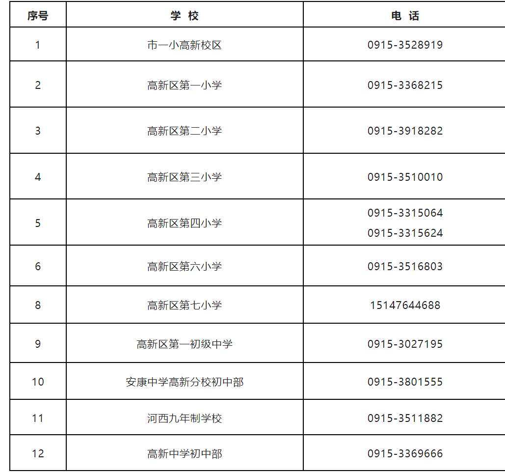 五、安康高新區(qū)2023年中小學(xué)校招生入學(xué)咨詢(xún)電話(huà)