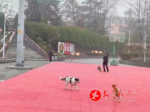 12月5日,中張嶺社區(qū)廣場市民遛狗不牽繩。