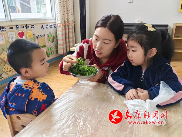 幼兒園組織家長和幼兒走進(jìn)自然,一起踏青采蒿,孩子們?cè)賹⒃牧蠋У綄W(xué)校?;顒?dòng)中,老師通過直觀形象的圖片、生動(dòng)有趣的視頻向孩子們講解清明節(jié)的來歷、風(fēng)俗習(xí)慣以及蒿子粑粑的制作方法,接著,孩子們?cè)诶蠋煹囊龑?dǎo)下,清洗蒿子,真真切切地體驗(yàn)了“做蒿子粑粑”的全過程。