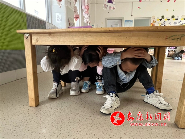 隨著室內(nèi)避震警報(bào)響起,防震演練正式開始,老師們迅速啟動(dòng)《防震疏散演練應(yīng)急預(yù)案》,各班教師立即引導(dǎo)幼兒盡量躲避在室內(nèi)墻根、墻角或床、桌等相對堅(jiān)硬的家具與三角區(qū)避震空間避險(xiǎn),引導(dǎo)幼兒身體彎曲,降低身體重心,盡最大努力保護(hù)好頭部。逃生疏散中老師不斷提醒幼兒們不要擁擠,手保護(hù)頭部、彎腰,迅速且有序沿著指定疏散路線撤離到安全區(qū)域,同時(shí)檢查是否有掉隊(duì)的孩子,確保每位幼兒安全撤離。