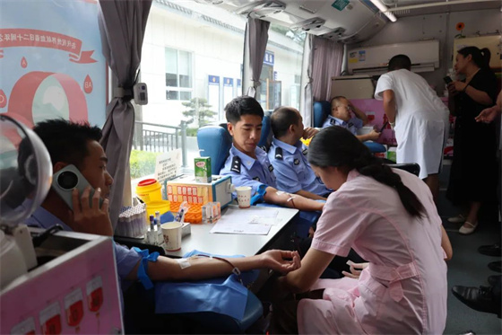 在獻(xiàn)血現(xiàn)場(chǎng),民警輔警在工作人員的引導(dǎo)下有序進(jìn)行獻(xiàn)血登記表的填寫(xiě)、健康征詢、血液初篩、采血等流程。一次次挽袖,一袋袋熱血,傳遞出社會(huì)的正能量與濃濃的愛(ài)心。全局民警輔警積極響應(yīng)熱情參與,以實(shí)際行動(dòng)踐行無(wú)私奉獻(xiàn)的精神,營(yíng)造“獻(xiàn)血救人,助人利己”的良好社會(huì)氛圍。