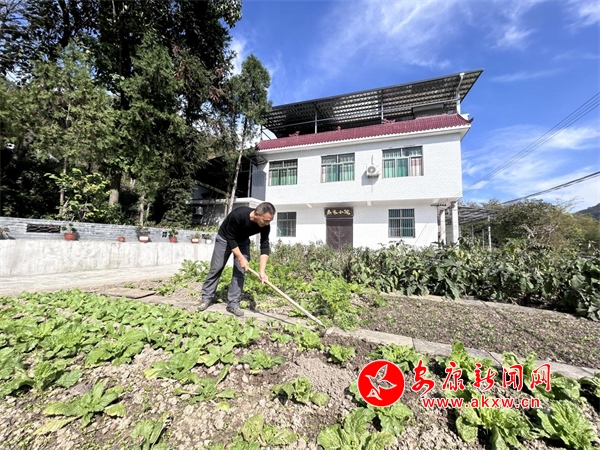 剛到門(mén)口,秦德盛一邊悠閑地給自家院子的小菜園澆水,一邊熱情地招待我們。