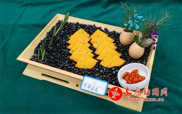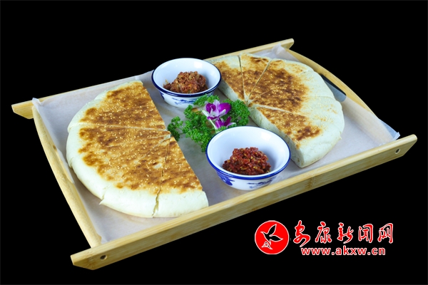 “甜酒火燒饃”,是石泉縣幾代人美食智慧的積累,傳承至今,是深受人們喜愛的小吃。它是采用古老傳統(tǒng)老酵面加甜酒發(fā)面,將老酵面、甜酒加入溫水后,再加入面粉一起攪拌均勻后再揉面。把面團(tuán)揉制光亮后放置幾小時(shí)待其自然發(fā)酵。等到面團(tuán)成發(fā)泡蜂窩狀態(tài),才可以開始將面團(tuán)做成圓形,在用搟面杖搟薄圓形面團(tuán)放入柴火灶鍋中,撒上芝麻,小火炕制一面黃在翻面炕制兩面色澤金黃。吃進(jìn)嘴里有小麥淡淡的清香味,也有甜酒的甜香味,回味無窮。杜光發(fā)制作的這道小吃獲得安康市2024年“安康味道”名小吃。