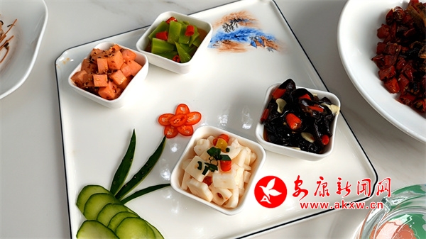 紫陽(yáng)洄水魚(yú)宴注重五彩斑斕“色美”,講究形態(tài)各異“形美”,追求突出特色“香美”,強(qiáng)調(diào)細(xì)膩柔滑“味美”。由8個(gè)涼菜、8個(gè)熱菜、2道小吃組成。涼菜有香酥小魚(yú)、干煸牛肉、茶香魚(yú)皮、鱘魚(yú)凍、撈汁七彩花生、雙色酸蘿卜、雙色變蛋、涼拌折耳根;熱菜包含茶香鱘魚(yú)、紫蘇魚(yú)片、熗鍋鯉魚(yú)、釀羊肚菌、辣子雞、臘味雙拼、魚(yú)頭燉黑豆腐、魚(yú)丸湯;小吃為魚(yú)肉餃煎和紫菜魚(yú)餅;主食則有金銀米飯以及酸菜面等。?