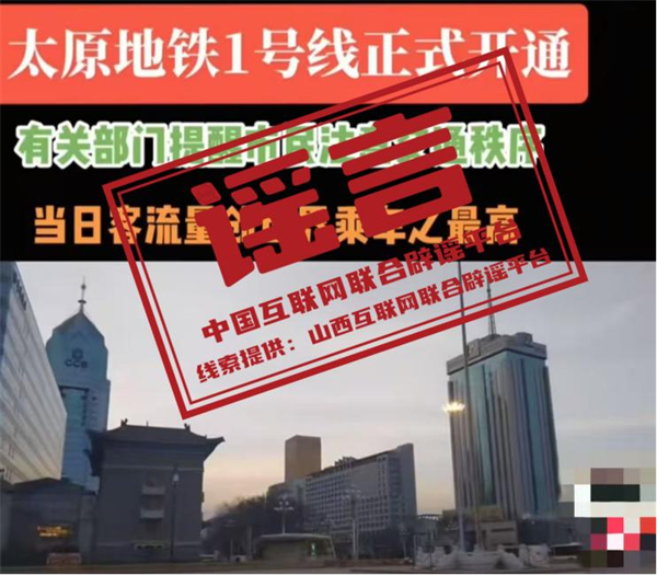 真相:近日,有網(wǎng)民發(fā)布短視頻稱“太原地鐵1號(hào)線正式開通,有關(guān)部門提醒市民注意交通秩序,當(dāng)日客流量創(chuàng)世界乘車之最高”。經(jīng)與當(dāng)?shù)亟煌ú块T核實(shí),此信息內(nèi)容不實(shí)。該網(wǎng)民行為違反《網(wǎng)絡(luò)信息內(nèi)容生態(tài)治理規(guī)定》第六條第八款規(guī)定,網(wǎng)信部門已將線索移交公安部門進(jìn)一步調(diào)查處理。(來(lái)源:“山西網(wǎng)絡(luò)舉報(bào)”微信公眾號(hào))