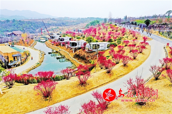 安康高新區(qū)桃花源,梅花與露營地星空房、湖溪亭榭相映成畫。詹永桂 攝