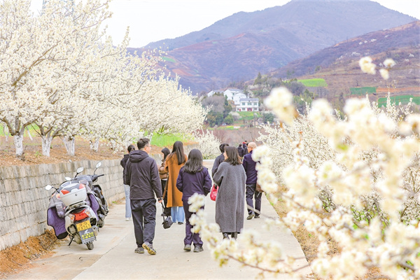 三月上旬,“櫻花之約·和美鄉(xiāng)村”示范展演在段家河薛家灣上演,櫻桃花海中,歌舞、漢服走秀、搖滾樂、表演唱、樂器演奏、小品等群眾喜聞樂見的節(jié)目,將鄉(xiāng)土藝術與特色民俗文化深度融合,舞鄉(xiāng)情、唱鄉(xiāng)音、觀演出、賞春景,以村莊房舍和漫山櫻桃花為背景,為游客送上了一道道精彩紛呈的暢游“花”樣春日“文化大餐”。