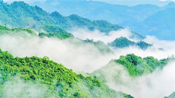 當(dāng)春風(fēng)揉碎了漢江的晨霧,紫陽縣青中村的云海便在山谷間舒展開來。這座懸于北緯32°的山間秘境,以800米海拔托起流動的瓊宇,用茶田織就青黛的綢緞。我循著四月春風(fēng)的足跡,在云海與炊煙交織處,觸摸到山水田園詩最鮮活的注腳。