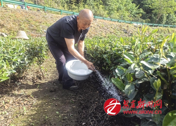 “沒想到政府直接把肥料送到茶園里了,既省時又省力,服務(wù)真是太周到了。我的2畝茶園分了70斤肥料,再過一段時間就可以機采夏秋茶了?!辈柁r(nóng)康中強滿臉喜悅地說。說話間,康中強順手將盆里的肥料,撒進挖好的茶壟里。
