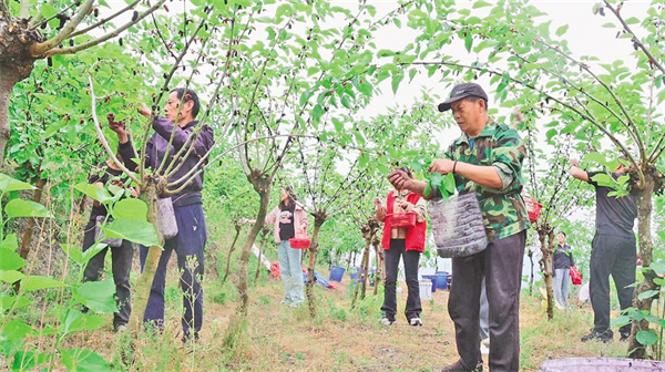 劉術(shù)榮的桑樹枝繁葉茂,桑葚掛滿枝頭,吸引了市民和游客觀光采摘。他每天請了十幾名工人幫忙,抓緊時間采收桑葚。經(jīng)過科學管護,這片果桑園每年能產(chǎn)桑葚超過20噸,帶動30余戶村民實現(xiàn)穩(wěn)定增收。