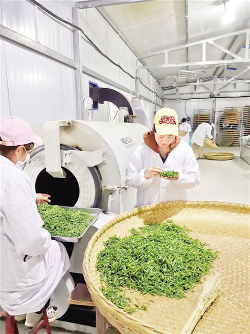 沿著九曲山路攀至絲鋪村五龍山,1200米的海拔高地,500畝生態(tài)茶園豁然舒展在眼前。茶農(nóng)們星羅棋布地穿梭在茶園,夏茶葉紛紛從茶樹間跌落?!案呱讲杌馗首悖@片云海就是天然保鮮庫。”村支部書記蔡家文輕捻茶葉,陣陣清香沁人心脾。旬陽五龍山農(nóng)民種植專業(yè)合作社負(fù)責(zé)人王志富打開茶廠卷簾門,生產(chǎn)線熱氣蒸騰?!叭ツ晡覀兪召徚?000公斤鮮葉,加工了1000公斤干茶,產(chǎn)值達(dá)到30萬元,輻射帶動(dòng)周邊村民端穩(wěn)飯碗。”