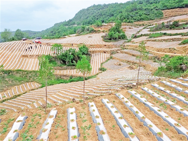 離開錢河梁,走進(jìn)海棠寺村的梯田里,種煙大戶吳義剛正迎著晨曦帶上20余名村民搶墑移栽。23年的種煙歲月在他臉上刻下溝壑,也沉淀出“致富良經(jīng)”。他瞇著眼睛笑著說:“去年新種的80畝煙田毛收入24萬,今年?duì)幦≡俣噘嶞c(diǎn),給孩子換臺(tái)好車?!碑?dāng)目光撫過嫩綠的煙苗,手掌摩擦著滴灌管道,吳義剛驀然間變得激動(dòng):“雖然今春干旱嚴(yán)重,但是政府配發(fā)的抗旱設(shè)備讓移栽成活率大大提升,我們的心血總算沒有白費(fèi)?!贝逯Р繒泟⒌瞧巾斨胰账闫甬a(chǎn)業(yè)增收賬:“今年450畝煙田已基本栽完,11個(gè)大戶帶著小戶干,戶均增收能破萬元?!?/p>