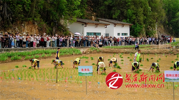 10點50分,插秧比賽正式開始,只見寨溝村、龍泉村、漁灣村、湯坪村四支隊伍在水田中依次排開。 隨著清脆的哨響,四支插秧隊伍迅速進入狀態(tài),水田瞬間化作激烈的賽場。彎腰俯身,左手攥緊秧苗,右手分秧、插秧,一株株嫩綠的秧苗被精準插入田中,泥水飛濺間,選手們你追我趕,汗水與歡笑交織,將傳統(tǒng)農事活動演繹成了一場精彩絕倫的視覺盛宴。