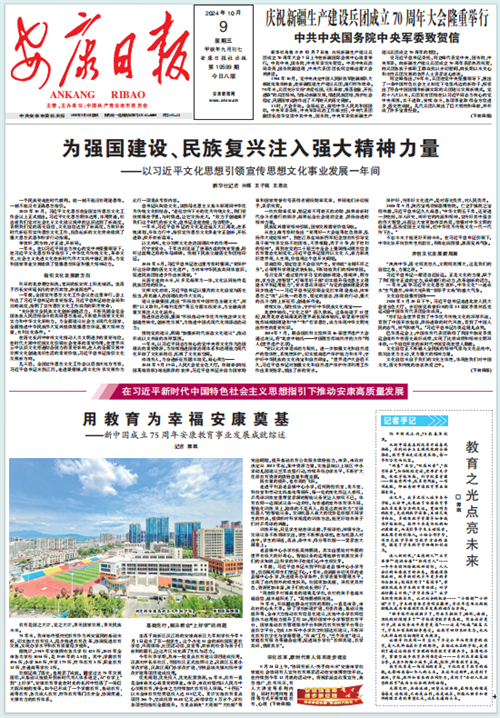 (2024年10月9日安康日報01版“教育之光點亮未來”)