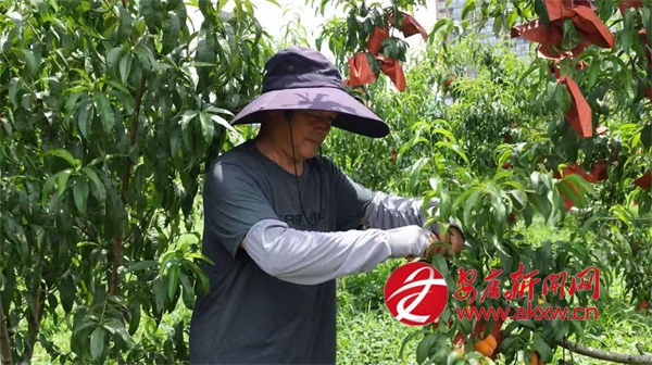 同樣迎來收獲的還有城關鎮(zhèn)的黃桃,在城關鎮(zhèn)龍嶺村的黃桃種植基地,連片的桃樹郁郁蔥蔥,金燦燦的黃桃壓彎了枝條,空氣中彌漫著誘人的桃香。基地負責人劉宏正忙著采摘,臉上洋溢著燦爛的笑容,他一邊采摘一邊介紹道:“我們這個桃園有金鳳黃桃、黃金黃桃、秋彤桃和冬桃四個品種,一共有9畝多,從6月中旬到10月左右,陸續(xù)都有成熟的桃子。”