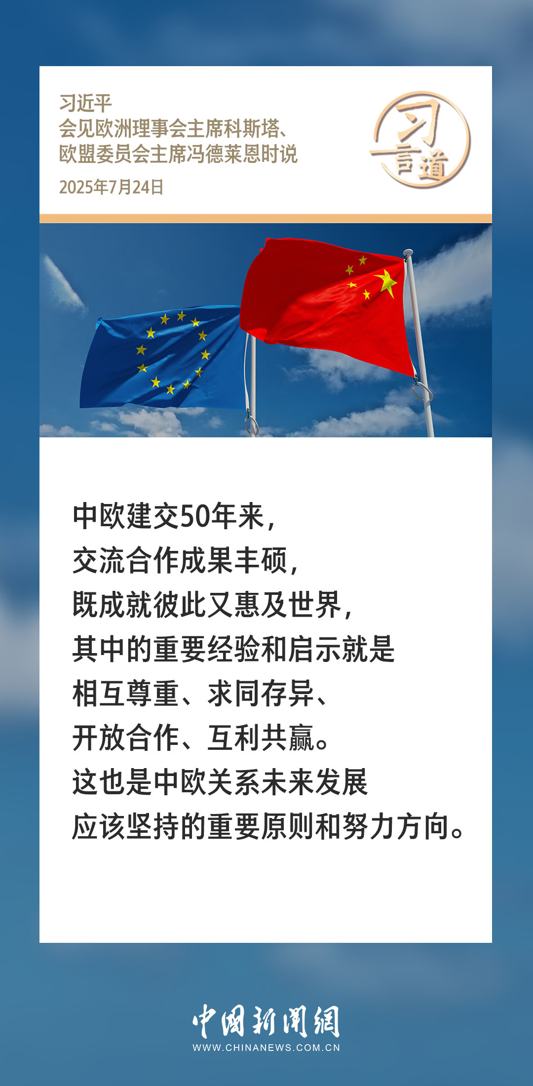 7月24日,國家主席習(xí)近平在北京人民大會(huì)堂會(huì)見來華舉行第二十五次中國-歐盟領(lǐng)導(dǎo)人會(huì)晤的歐洲理事會(huì)主席科斯塔和歐盟委員會(huì)主席馮德萊恩。習(xí)近平指出——