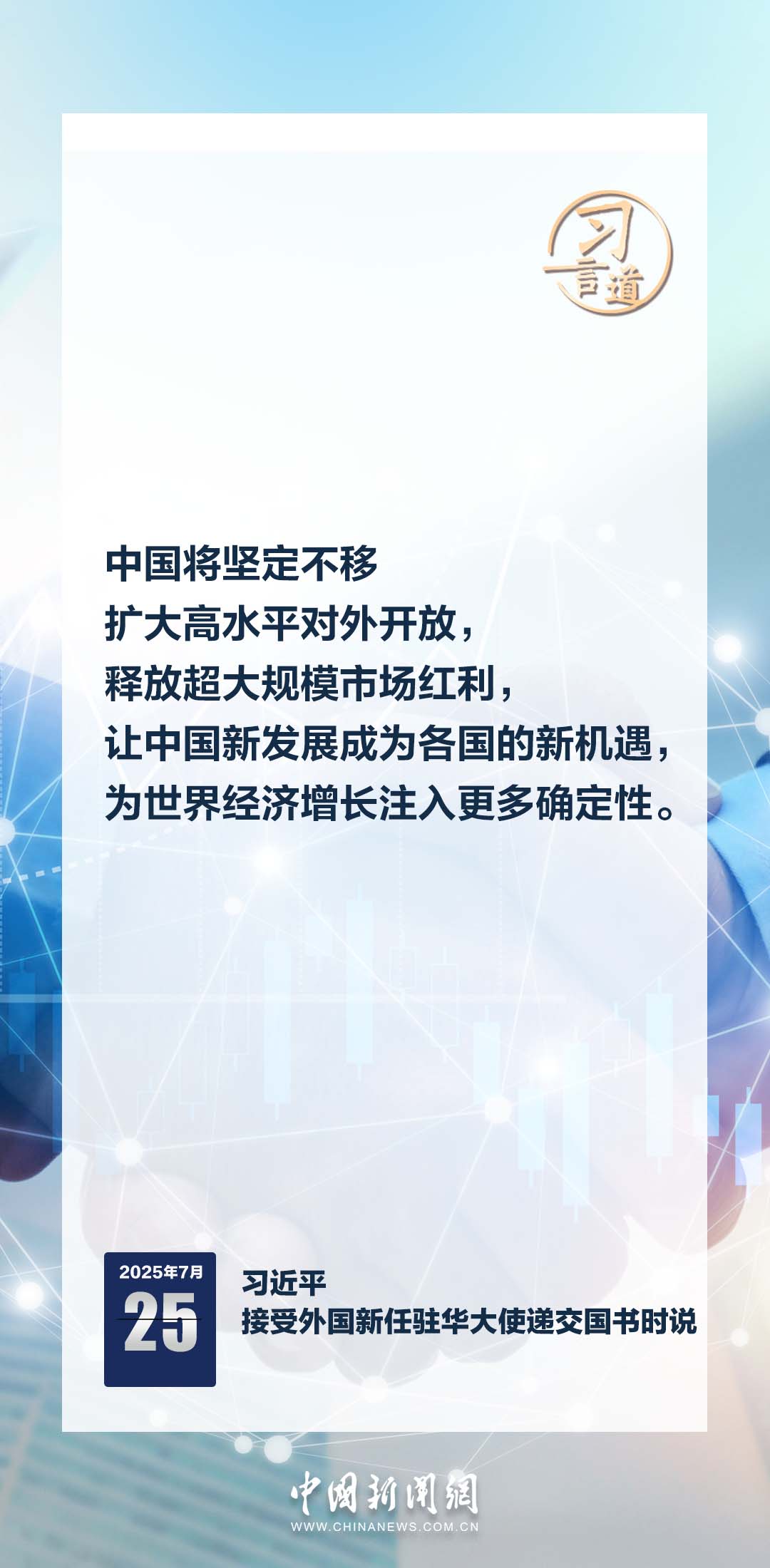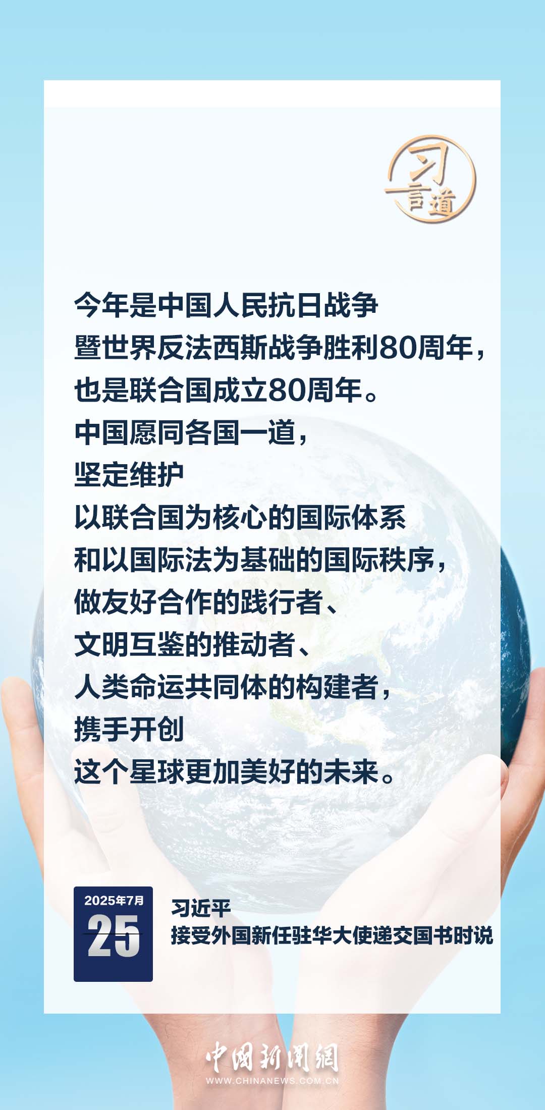 7月25日,國家主席習近平在北京人民大會堂接受16位駐華大使遞交國書。儀式結束后,習近平在北京廳對使節(jié)們發(fā)表講話。習近平指出——