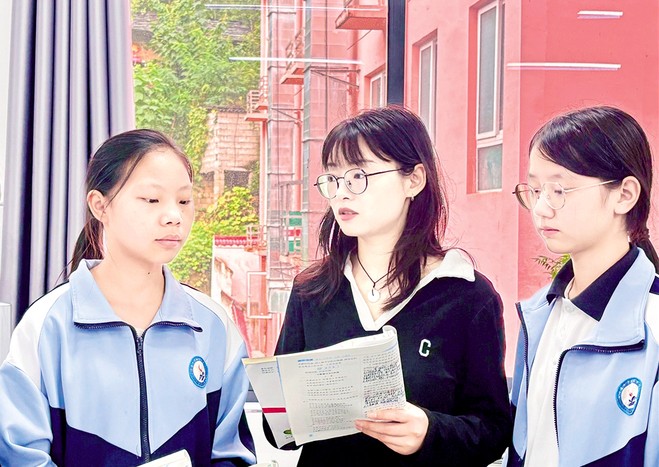 吳雙雙與學(xué)生探討問題