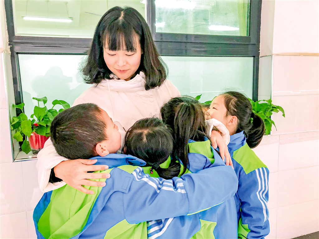 楊廣慧與學(xué)生們相擁