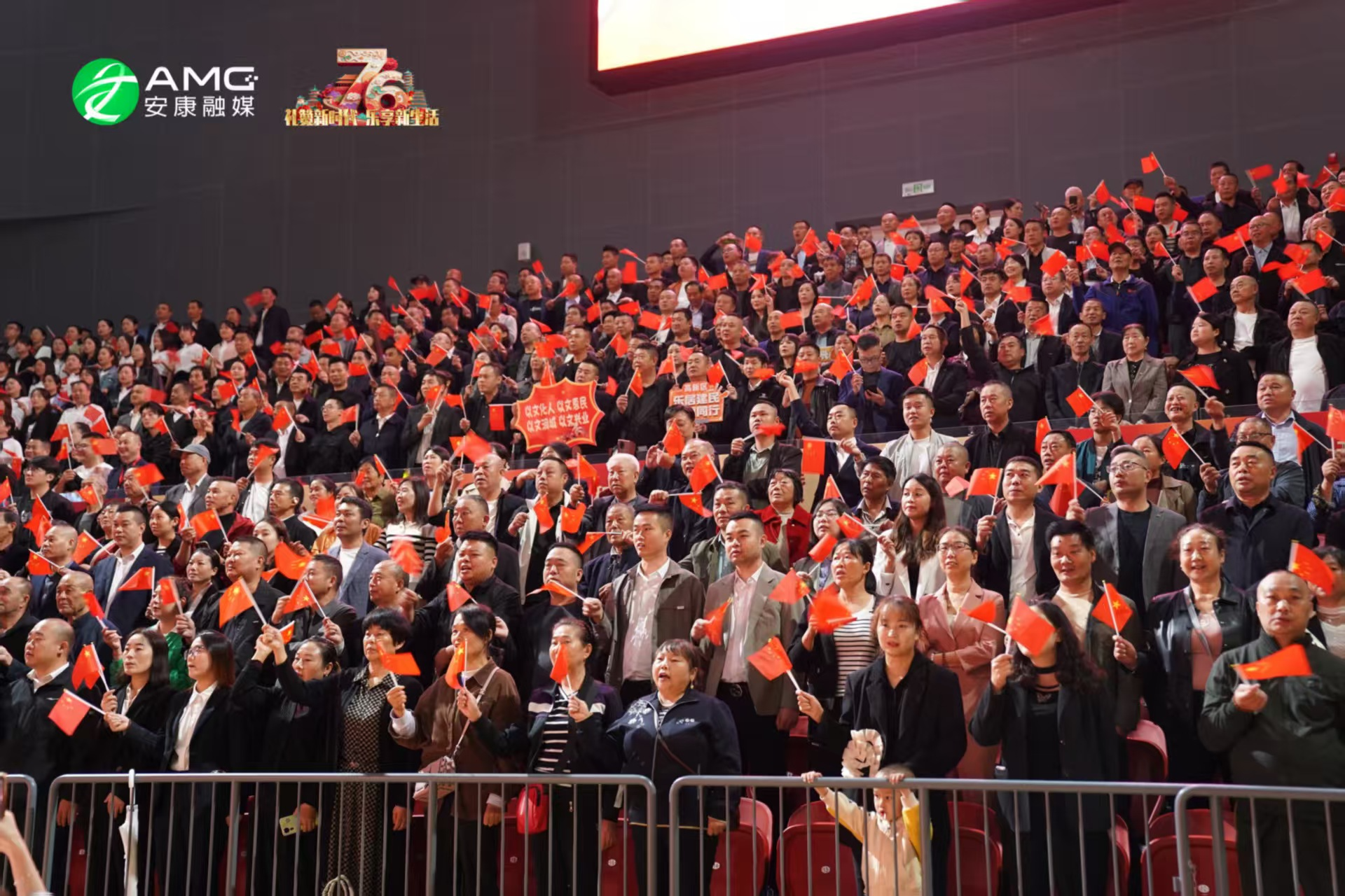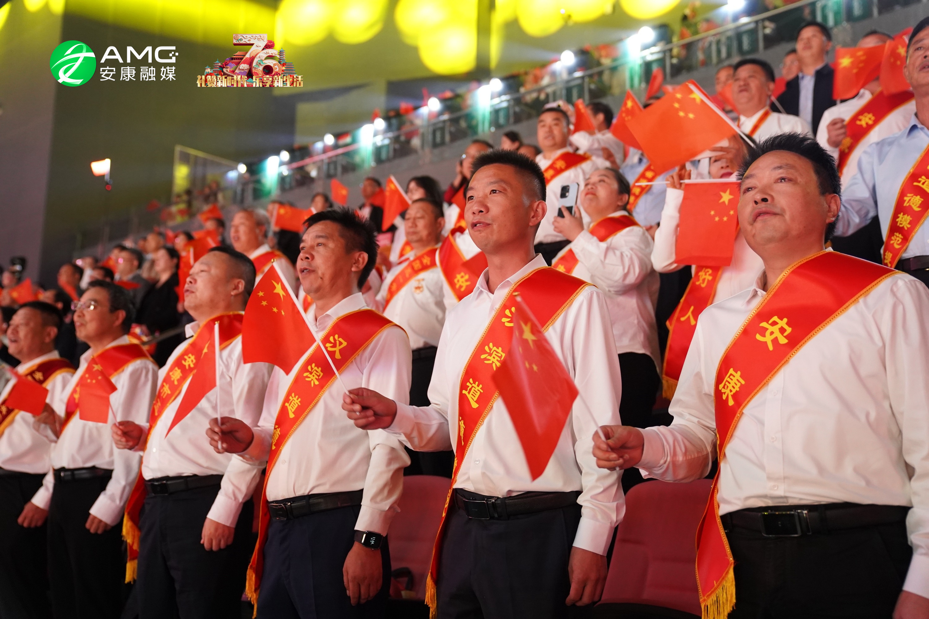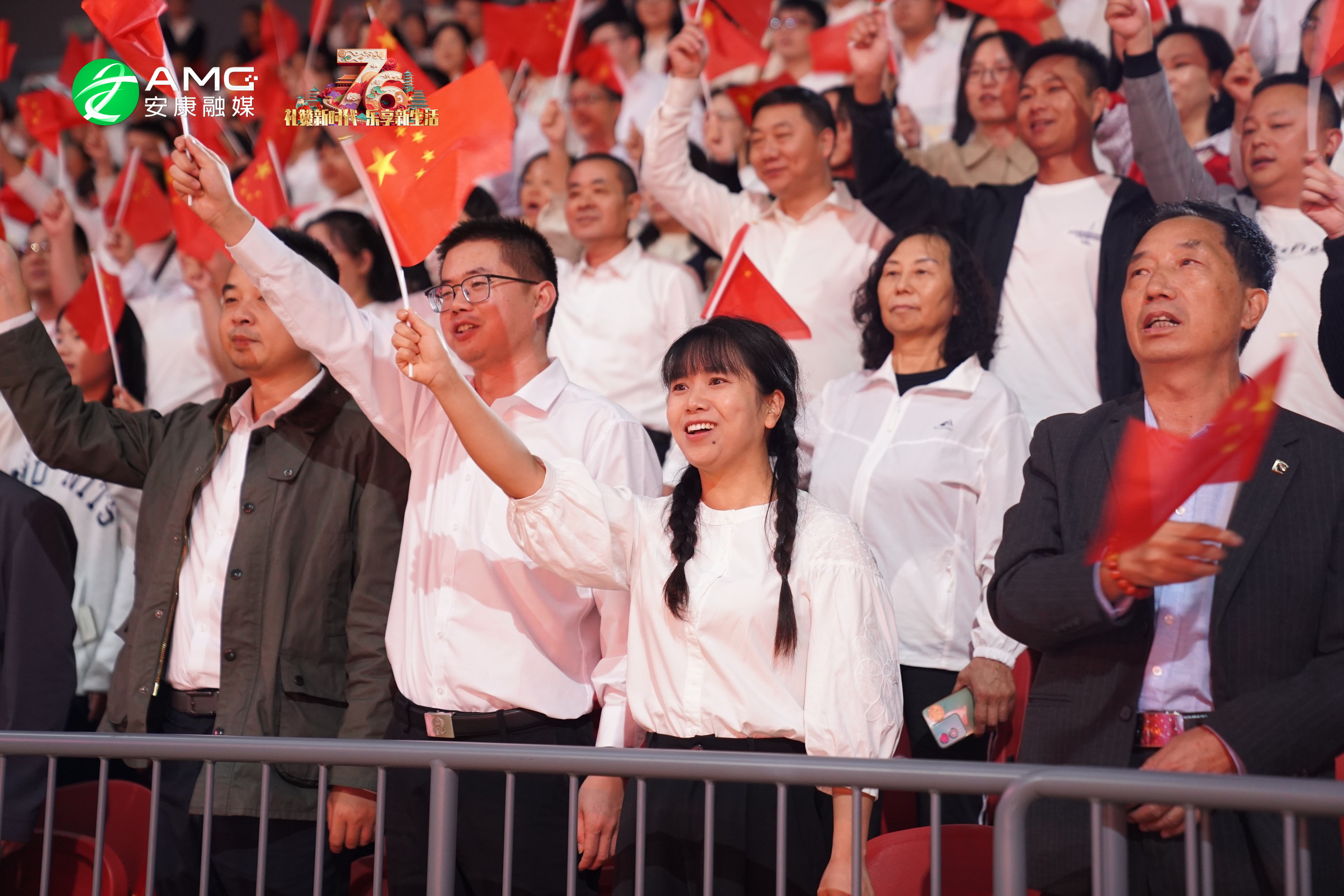 最后,全場(chǎng)人員起立揮舞紅旗,齊聲高唱《歌唱祖國(guó)》,用最真摯的歌聲祝福祖國(guó)繁榮昌盛,祝愿安康的明天更加美好。歌聲震徹場(chǎng)館,將整場(chǎng)活動(dòng)推向高潮。