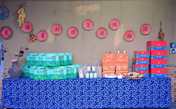 此外,活動現(xiàn)場精心打造了“重陽有好禮,蓮藕燉豬蹄”網(wǎng)紅墻,成為參會人員打卡留戀的熱門地點;同時,設(shè)置了農(nóng)副產(chǎn)品展銷區(qū),集中呈現(xiàn)紫陽蒸盆子、蒿坪河蓮藕、紫陽荷葉茶、蓮藕燉豬蹄等特色農(nóng)副產(chǎn)品。值得關(guān)注的是,硒園農(nóng)莊此次首次推出“蒿坪河蓮藕燉豬蹄”伴手禮盒,分為“四至五人份”和“八至十人份”兩種規(guī)格,于重陽節(jié)前夕上市。該禮盒將堂食菜品轉(zhuǎn)化為便攜商品,為當?shù)厣徟轰N售拓展了新渠道,也為蓮藕產(chǎn)業(yè)鏈延伸做了初步嘗試。