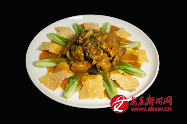 2022年,王鵬注冊成立了寧陜縣關(guān)口菜根香餐飲文化有限公司,這不僅是為了傳承陜菜傳統(tǒng)文化的精髓,更是將中國古典文化中的“匠心”與“堅(jiān)守”融入烹飪之道。在其精湛的廚藝之下,每一道菜都承載著文化與創(chuàng)意。天麻燒乳鴿,鴿肉鮮嫩,天麻咸鮮,是一道難得的養(yǎng)生菜品?!绊懱冒謇蹼u”以玉米鍋巴、板栗土雞為主料烹制而成,鍋巴在口腔里發(fā)出咔咔脆的聲音,就有了形象的“響堂”,每一口都是味蕾的享受,于2016年入選“陜西名菜”。