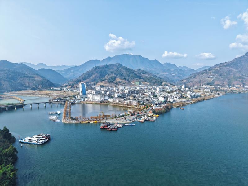 冬日里的石泉縣后柳水鄉(xiāng),藍(lán)天白云、船泊江畔、水如碧玉,共同構(gòu)成一幅靜謐的山水畫(huà)卷。楊勇 攝