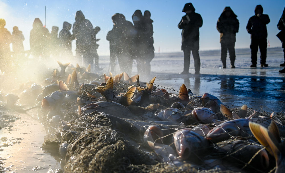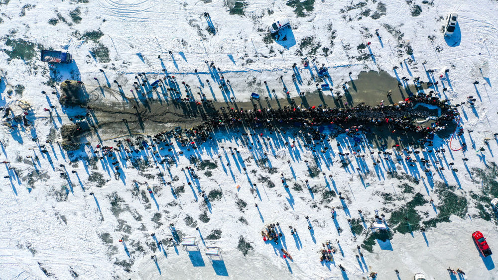 ??2021年12月26日,游客在查干湖冰面上觀看冬捕。近年來,查干湖在保護生態(tài)環(huán)境的基礎上,推動冬捕的可持續(xù)發(fā)展,通過科學規(guī)劃捕撈量、加強漁業(yè)資源管理等措施,確保查干湖漁業(yè)資源的穩(wěn)定增長。