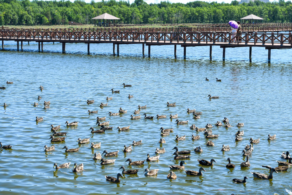 ??2024年8月26日,游客在查干湖野鴨島游覽。截至2025年5月9日,查干湖實施濕地保護與恢復項目24個,保護區(qū)濕地面積達517.2平方公里,成為全球九大候鳥遷徙路線的“能量補給站”。隨著觀鳥、拍鳥熱潮興起,“觀鳥經(jīng)濟”為當?shù)匚穆米⑷胄禄盍Α?/span>