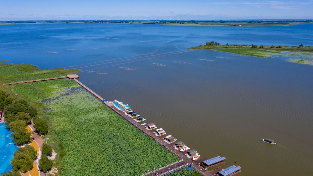 ??2020年7月20日拍攝的查干湖濕地。查干湖通過一系列工程性、生物性和管理性措施,不斷擴大濕地面積,維護濕地生態(tài)平衡。截至2025年2月,查干湖實施濕地保護與恢復等項目24個,通過河道治理、引水灌溉、生態(tài)修復等工程,調(diào)配利用洪水資源和灌溉回歸水,實現(xiàn)“松花江—查干湖—嫩江”水體連通和動態(tài)循環(huán)。