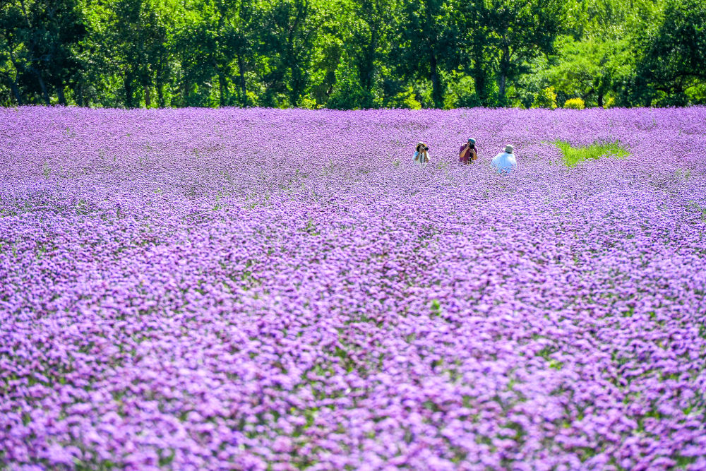 ??2024年8月26日,游客在查干湖花海拍照留念。