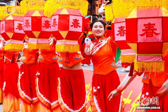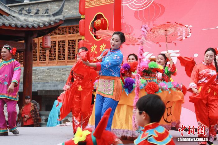 2月4日,全國“村晚”示范展示點(diǎn)活動(dòng)暨旬陽市“我在古鎮(zhèn)過大年”文旅活動(dòng)在陜西安康旬陽市蜀河鎮(zhèn)啟動(dòng)?;顒?dòng)緊扣“古鎮(zhèn)年味”元素,融合漢江航運(yùn)文化、鄉(xiāng)村振興等內(nèi)容,以村歌聯(lián)唱、戲曲薈萃、農(nóng)民走秀、農(nóng)產(chǎn)品展銷等形式,營造出了濃厚的春節(jié)氛圍。圖為活動(dòng)現(xiàn)場(chǎng)。 張昊 攝