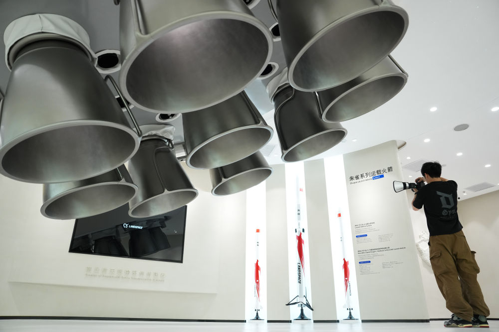 強化產(chǎn)業(yè)圈聯(lián)動發(fā)展,是北京持續(xù)提升科技成果區(qū)域內(nèi)轉化效率和比重的有效舉措。以商業(yè)航天產(chǎn)業(yè)為例,目前,扎根北京的商業(yè)航天百強企業(yè)、上市企業(yè)和獨角獸企業(yè)約占全國半壁江山。產(chǎn)業(yè)鏈覆蓋運載火箭、衛(wèi)星制造、地面站及終端設備、衛(wèi)星應用服務全領域。這是2025年6月18日在北京經(jīng)濟技術開發(fā)區(qū)藍箭航天空間科技股份有限公司拍攝的朱雀系列運載火箭模型。