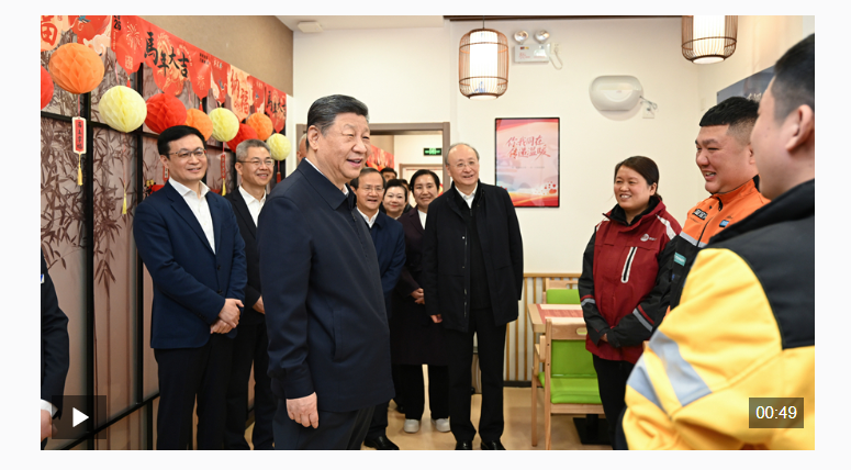10日上午,習(xí)近平總書記來到北京市西城區(qū)新街口街道父母食堂考察。見到在這里休息的3名快遞小哥,習(xí)近平關(guān)切詢問他們跑快遞多久了、工作累不累、收入怎么樣、春節(jié)回不回家,為他們付出的辛勞和作出的貢獻(xiàn)點(diǎn)贊。習(xí)近平說,你們滿足千家萬戶需求,城市運(yùn)轉(zhuǎn)離不開你們,希望你們都能夠生活得好、工作得好。習(xí)近平強(qiáng)調(diào),各級黨委和政府一定要關(guān)心新就業(yè)群體,為他們的生活、工作、學(xué)習(xí)提供好服務(wù)。