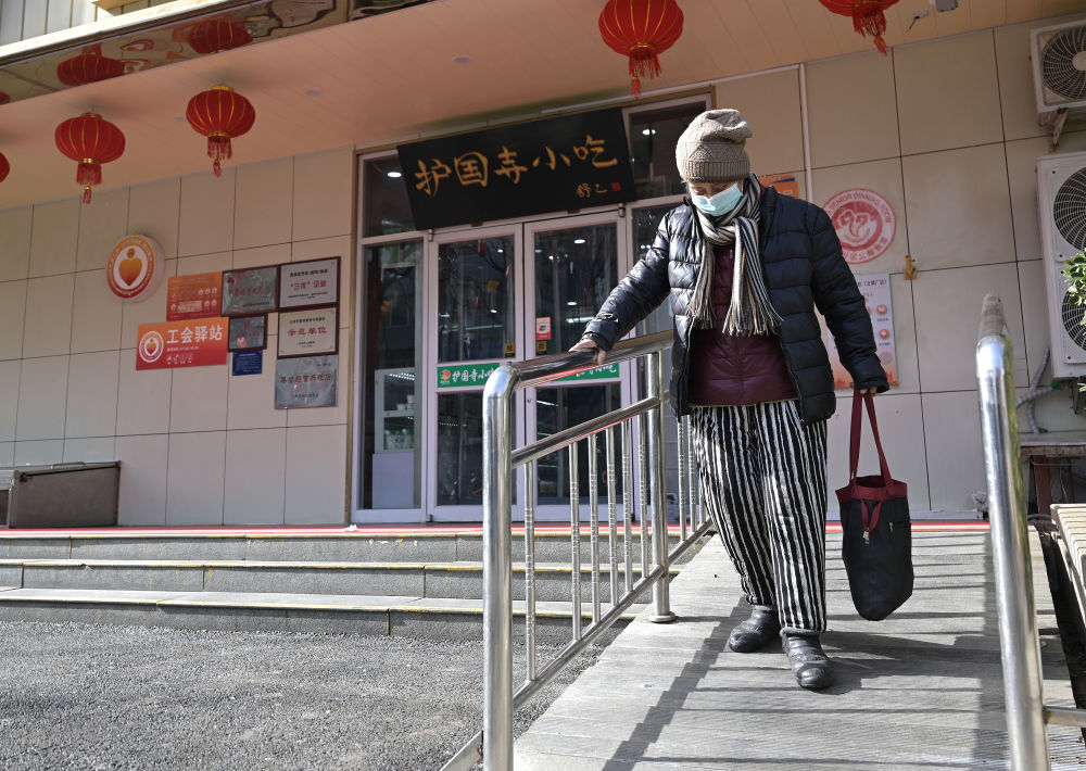 73歲的社區(qū)居民走在專(zhuān)為老年人和行動(dòng)不便者設(shè)置的緩步斜坡步道上(2月10日攝)。