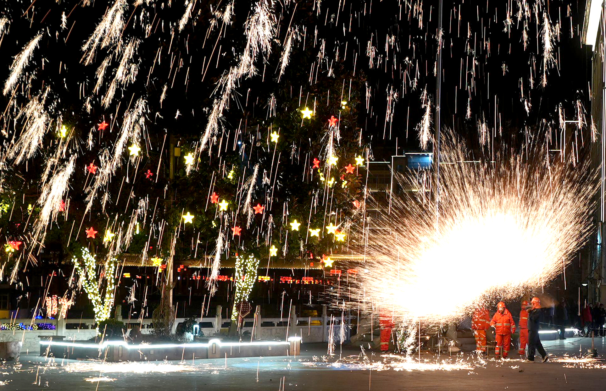 2月18日晚,寧陜縣政府廣場舉辦民俗文化活動。圖為“打鐵花”表演。陳苗 攝