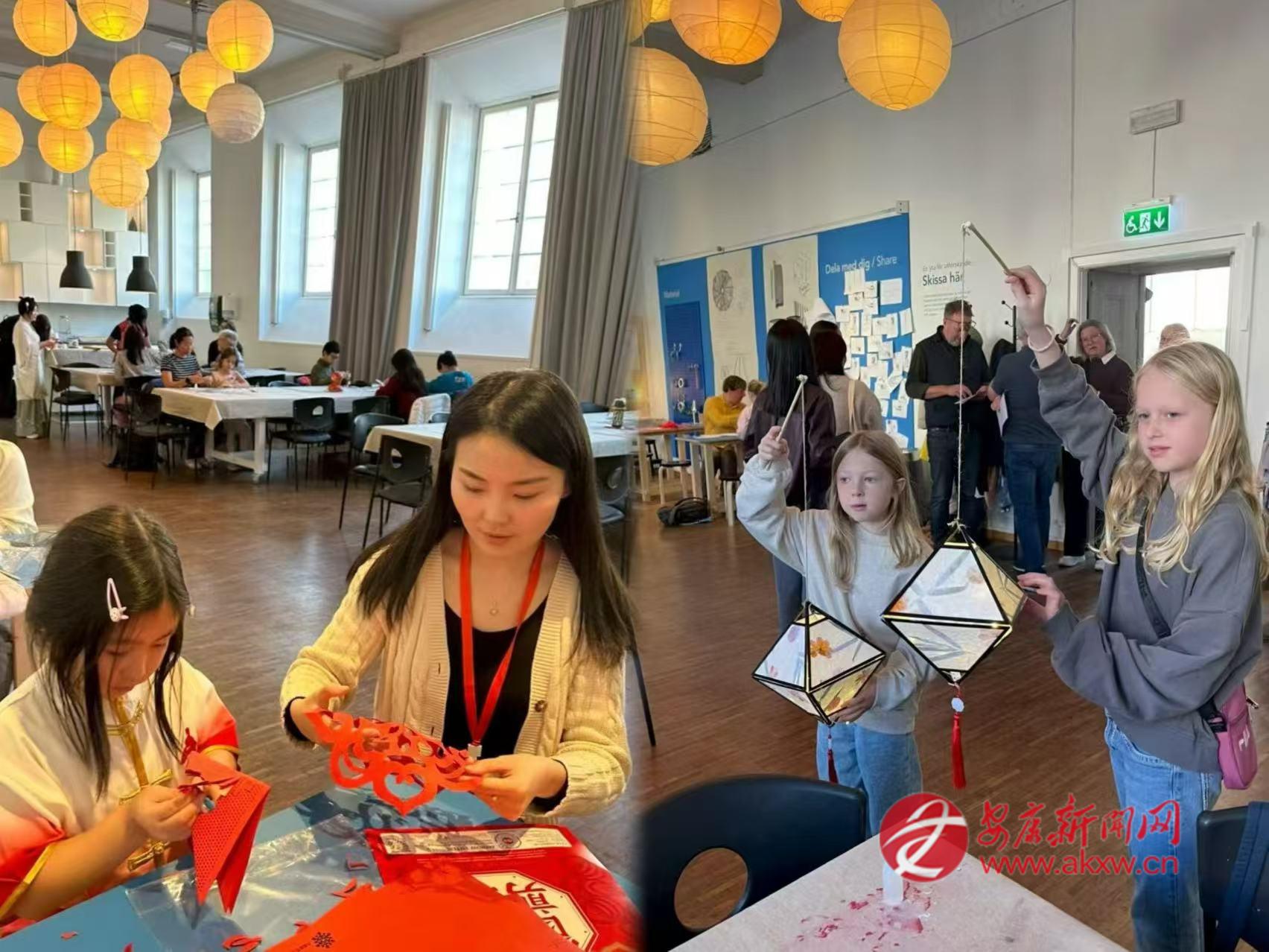 2025年中秋節(jié),在哥德堡市立博物館的展廳里,邱萌教當(dāng)?shù)睾⒆觽冏鰺艋\、剪剪紙。她和孩子們一起用宣紙折疊成燈籠,讓瑞典人得以近距離觸摸中國(guó)節(jié)日。有人好奇地問(wèn)起中秋的月亮,她便講起嫦娥奔月的傳說(shuō),講起月餅的寓意,講起“千里共嬋娟”的詩(shī)句。博物館里點(diǎn)亮了許多盞燈籠,每一盞都映照著孩子們專(zhuān)注而好奇的臉龐。