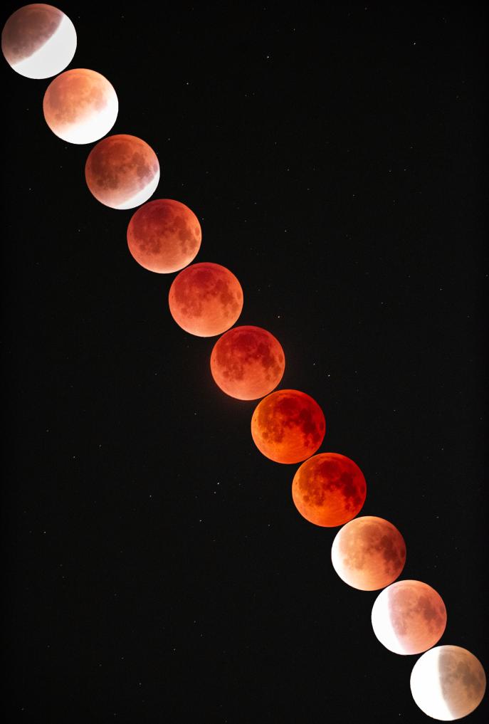 如何觀測(cè)和拍攝這輪“紅月亮”?蔣晨明告訴記者,與日食不同,月食可以直接用肉眼觀測(cè),無需佩戴任何防護(hù)設(shè)備;如果有望遠(yuǎn)鏡,可以看清月亮表面陰影、環(huán)形山、“紅月亮”層次,效果壯觀震撼;喜歡攝影的朋友可以使用專業(yè)相機(jī)或手機(jī)針對(duì)各階段的月亮形態(tài)分別拍攝,做延時(shí)拍攝還可以還原月食的全過程。