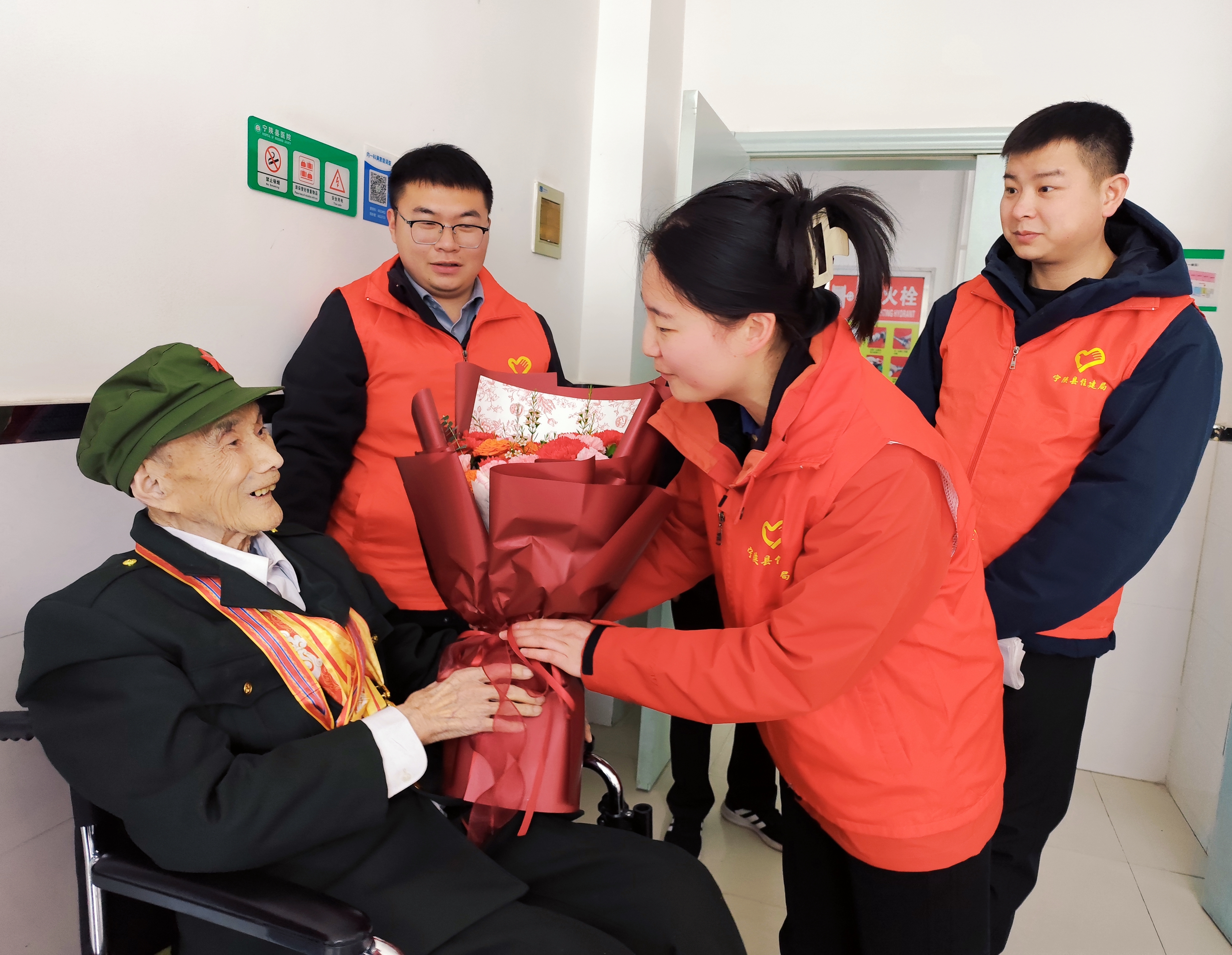 活動(dòng)現(xiàn)場(chǎng)暖意融融,志愿者圍在老人身邊,促膝長(zhǎng)談、噓寒問暖,細(xì)心詢問其飲食起居和身體狀況,認(rèn)真傾聽那段浴血奮戰(zhàn)的革命故事?!袄先孙嬍城宓駹顟B(tài)一直很好?!弊o(hù)理人員李娟介紹,老人性格開朗,時(shí)常給大家講述戰(zhàn)場(chǎng)事跡,傳遞著滿滿的正能量。