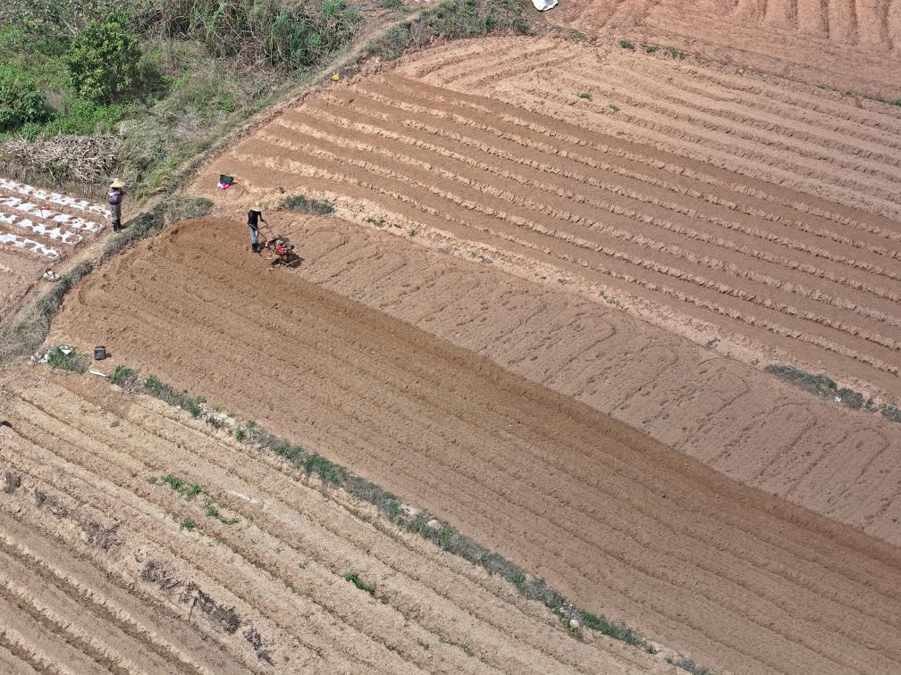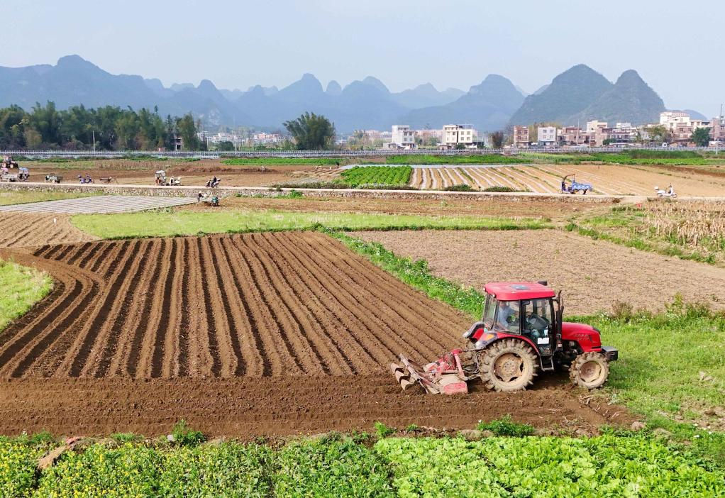 近日,廣西來賓市忻城縣城關(guān)鎮(zhèn)都樂村農(nóng)民駕駛農(nóng)機(jī)在翻耕田地,準(zhǔn)備種植玉米(無人機(jī)照片)。一年之計在于春,各地人們忙著翻耕土地、培育秧苗、檢修農(nóng)機(jī)、裝運(yùn)化肥,為春耕生產(chǎn)做準(zhǔn)備。新華社發(fā)(樊紹光 攝)