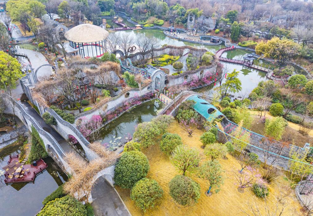 近日拍攝的位于江蘇省揚(yáng)州市江都區(qū)丁伙鎮(zhèn)的樸園春色(無人機(jī)照片)。春意漸濃,各地美景吸引人們外出游玩賞景,盡享春日好時光。新華社發(fā)(任飛攝)