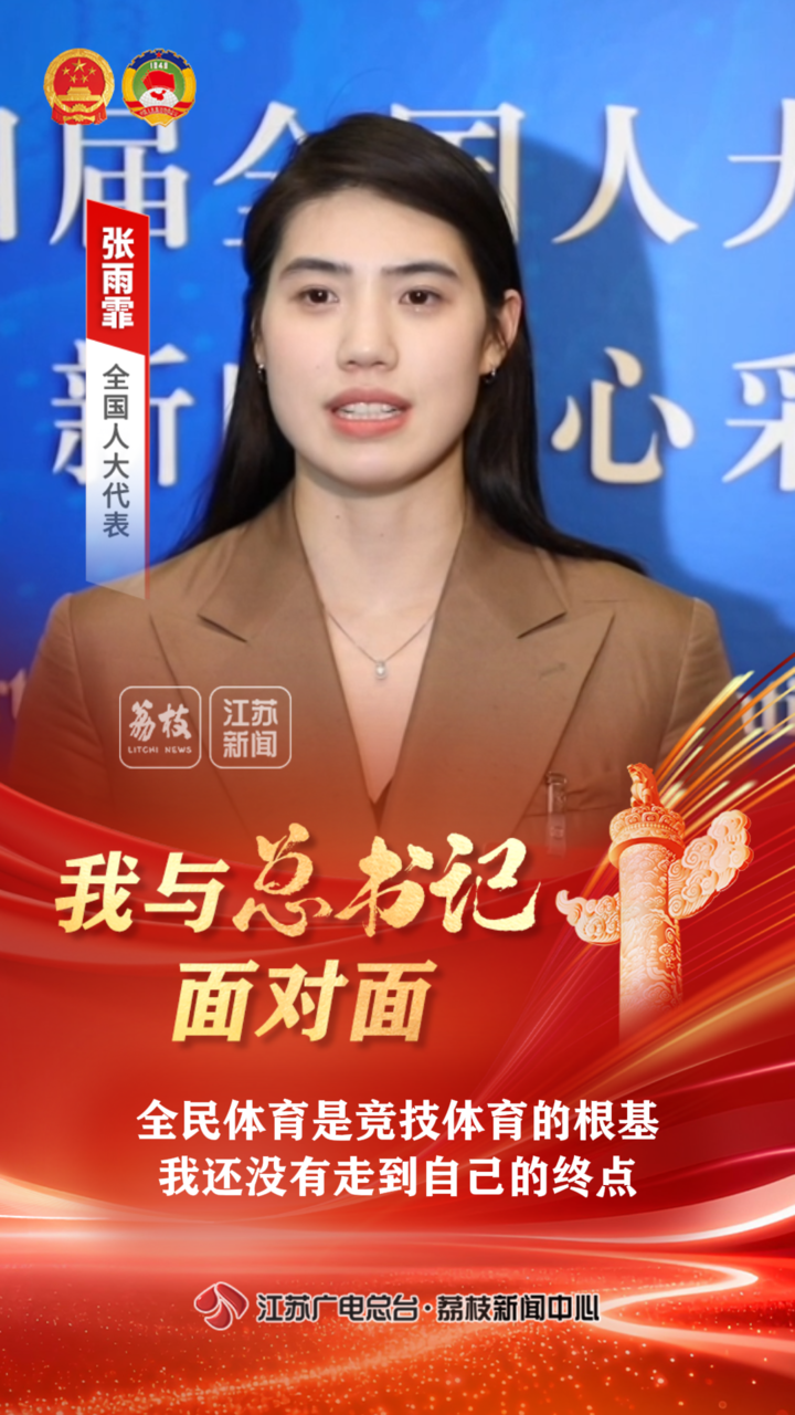 南京體育學(xué)院游泳隊(duì)運(yùn)動(dòng)員、游泳學(xué)院副院長(zhǎng)張雨霏代表,向總書記匯報(bào)了“蘇超”等大眾體育對(duì)競(jìng)技體育的促進(jìn)作用,她自己參加奧運(yùn)的“戰(zhàn)績(jī)”和對(duì)未來征戰(zhàn)賽場(chǎng)的目標(biāo)和規(guī)劃。